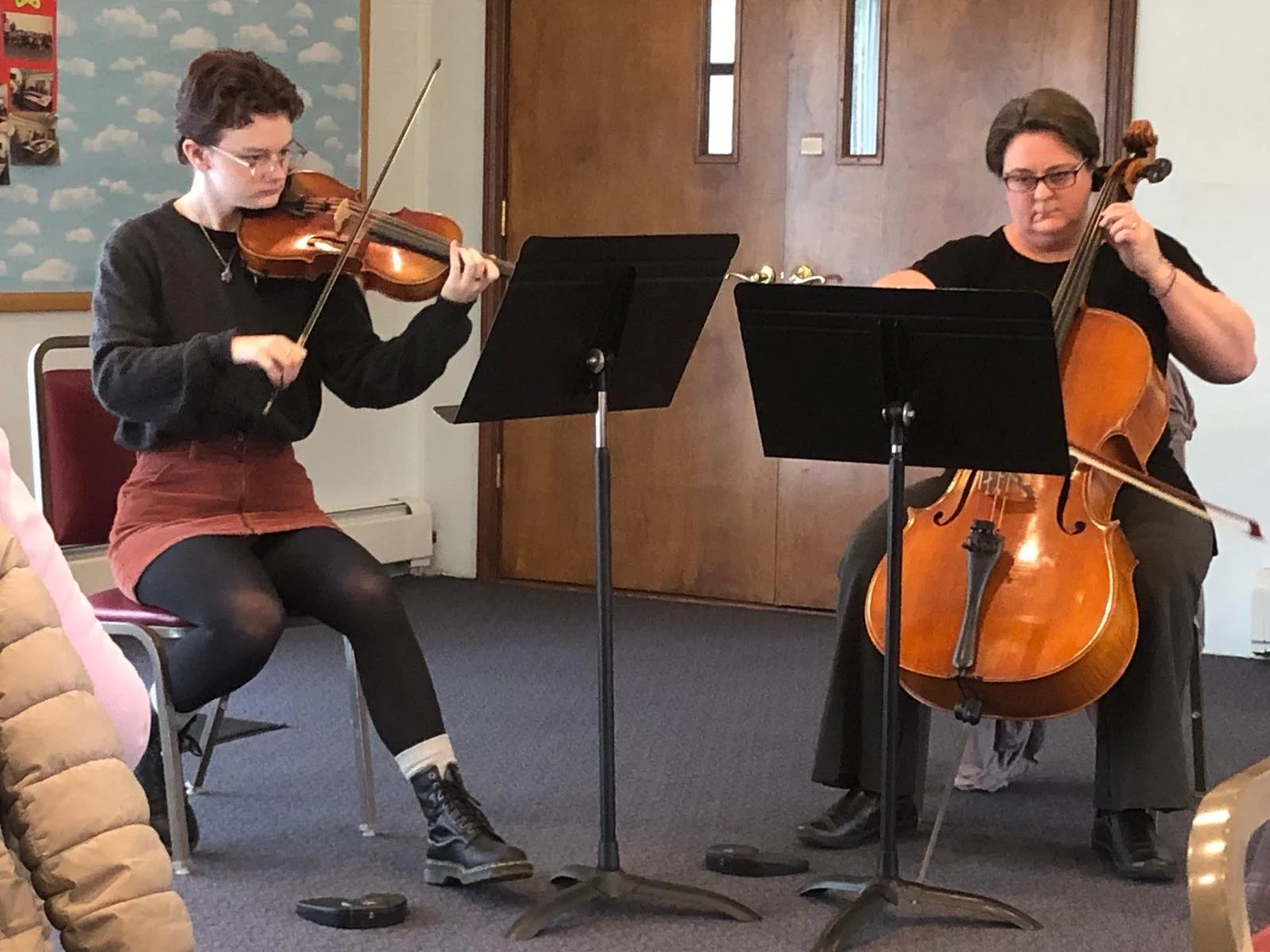Karin & Paige Loewen performed cello & viola duets for a Brown Bag Lunch concert.